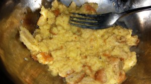 - mie de pain (j’ai utilisé 2 tranches de la « miche à l’avoine et au quinoa de style maison » de la marque « Boulange des campagnards »)